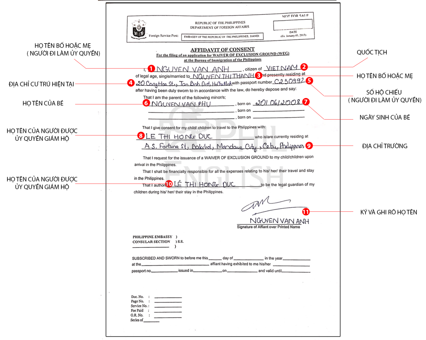 Theo quy định của Cục nhập cảnh Philippines, học sinh dưới 15 tuổi khi xuất cảnh không có cha mẹ đi cùng bắt buộc phải có giấy ủy quyền giám hộ cho đại diện của nhà trường (thường là thầy cô dẫn đoàn).
