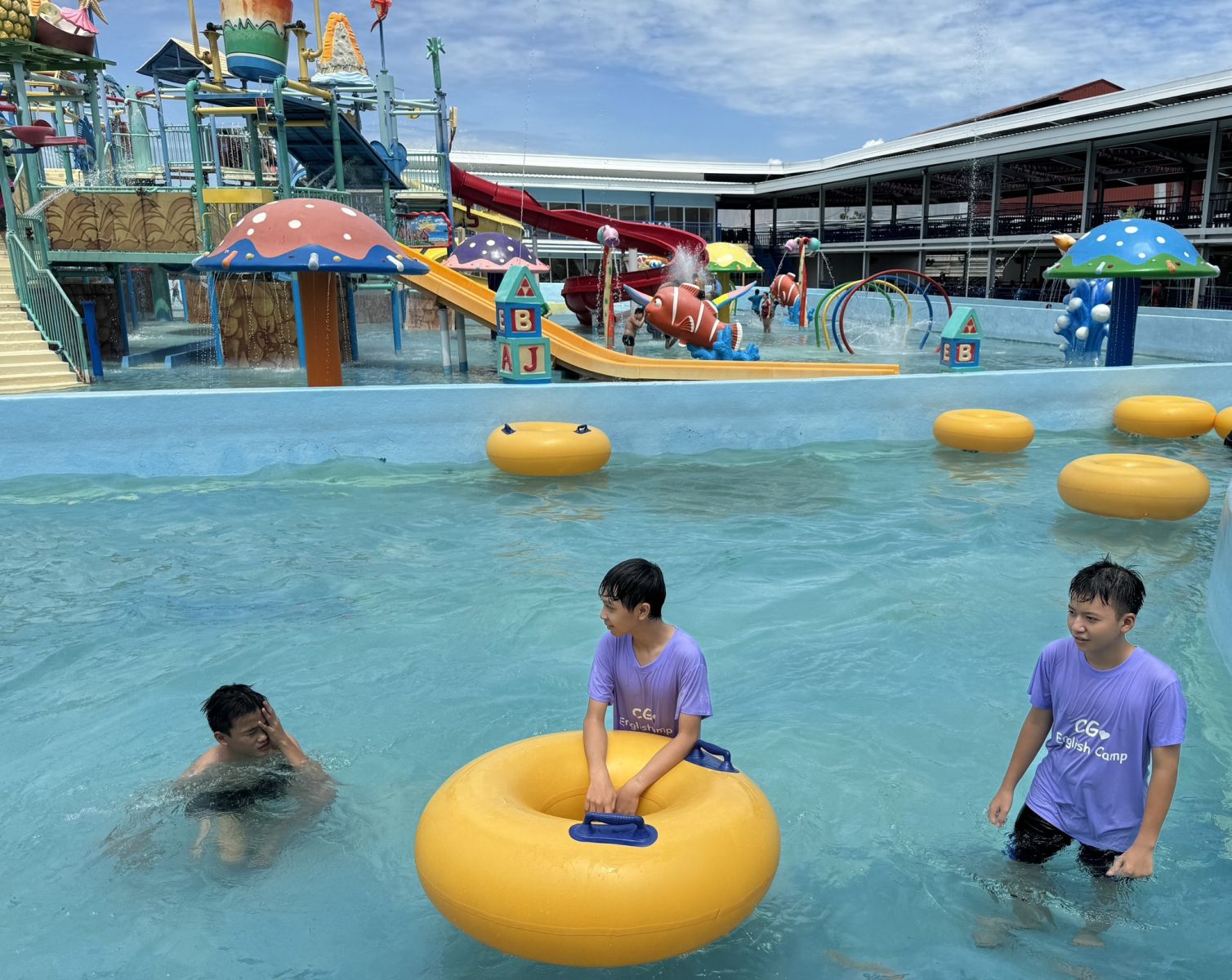 Sau những giờ học tiếng Anh sôi nổi tại CG Academy, các bạn học viên đã cùng nhau "bung xõa" tại Cebu WaterWorld – công viên nước nổi tiếng và hấp dẫn bậc nhất tại Cebu! Từ máng trượt khổng lồ, hồ tạo sóng, bể bơi vui nhộn đến không khí mát lạnh giữa thiên nhiên miền nhiệt đới – tất cả tạo nên một ngày trải nghiệm cực đã, giúp các bạn vừa thư giãn, vừa kết nối với bạn bè bằng tiếng Anh một cách tự nhiên và thoải mái.