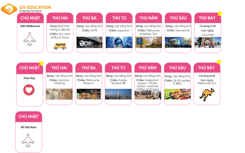 GV Education là đơn vị tư vấn và tổ chức trại hè quốc tế uy tín, đã đồng hành cùng hàng trăm học sinh Việt Nam tham gia các chương trình trại hè tại Úc, Philippines, Singapore và nhiều quốc gia khác. Khi đăng ký trại hè Úc 2026 qua GV Education, phụ huynh sẽ được: