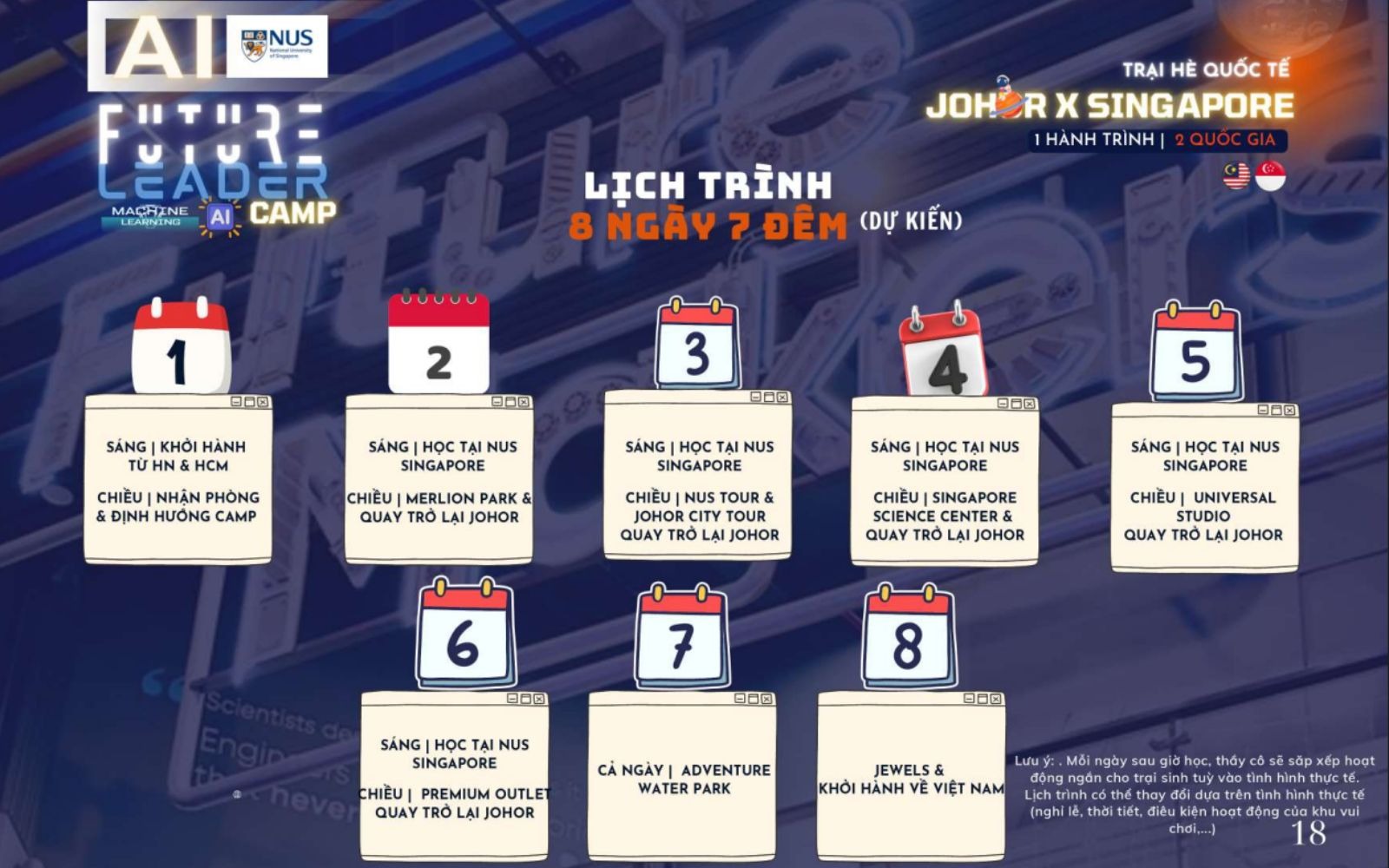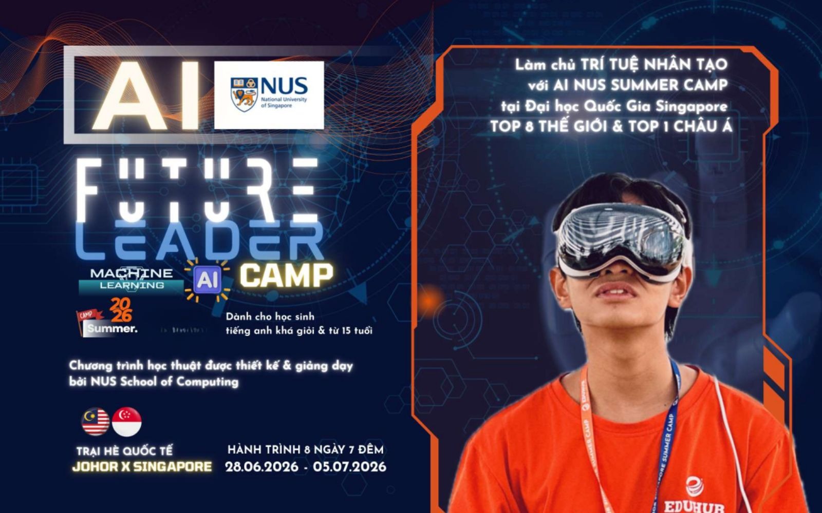 Năm 2026, trí tuệ nhân tạo (AI) không còn là khái niệm viễn tưởng mà đã trở thành kỹ năng sinh tồn bắt buộc cho thế hệ trẻ. Đối với những học sinh từ 15 tuổi trở lên có định hướng du học hoặc theo đuổi khối ngành STEM, việc tiếp cận AI tại một trong những "cái nôi" học thuật hàng đầu thế giới là bước đệm không thể thay thế. Chương trình AI NUS Camp thuộc chuỗi Trại hè Johor Singapore chính là hành trình hiện thực hóa mục tiêu đó.