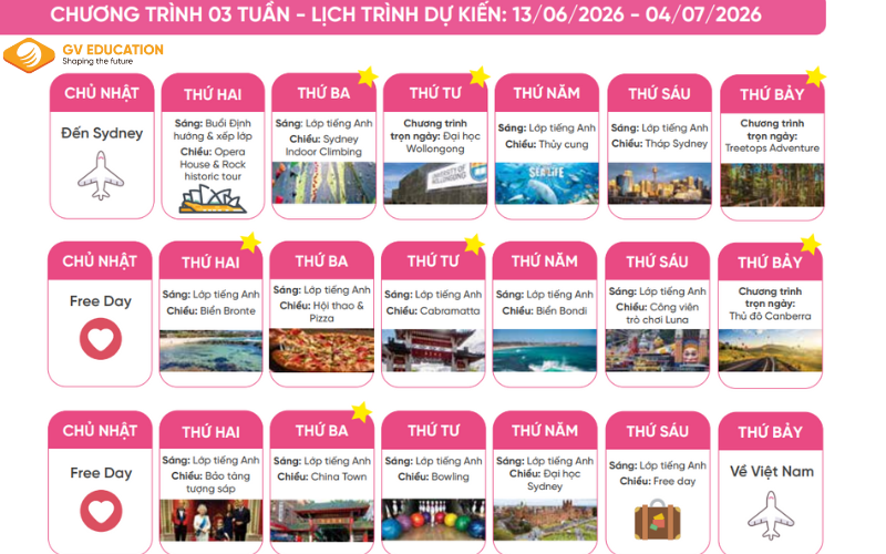 Thời lượng: 2 tuần (14/06/2026 - 28/06/026) hoặc 3 tuần (13/06/2026 - 04/07/2026)